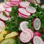 - Gurke und Radieschen waschen, putzen und ebenso in feine Scheiben schneiden.