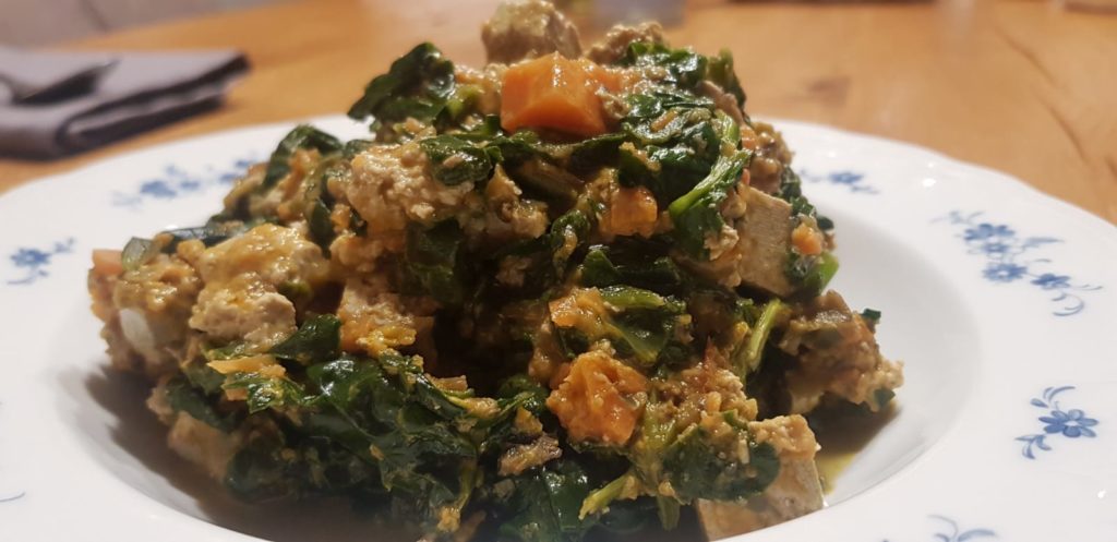 Durch die Menge des Spinats gleich das Ganze eher einem Eintopf.